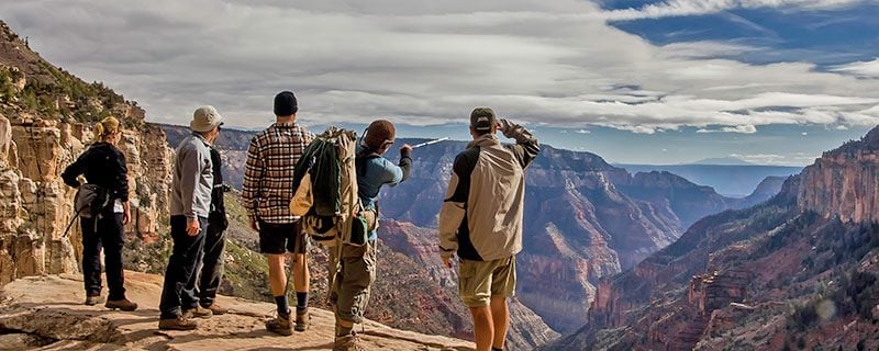 Unless we tell you otherwise, you will meet your guide and group at the Little America Hotel in Flagstaff (use this reservation page for a 10-60% discount at Little America) for an orientation meeting at 5:00 PM the evening before the trip begins. We’re happy to give you a ride to this meeting if you’re not staying at Little America, but staying at one of our other recommended hotels. Your guide will then pick you up at your hotel the next morning for transport to the trailhead. For Private Grand Canyon Tours your guide will meet you at your hotel in Flagstaff at an agreed upon time.