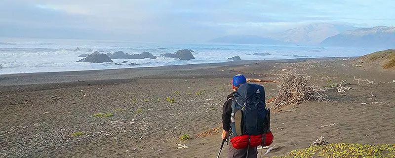 This trip is rated as a level 5 due to the challenging nature of the terrain which includes traversing slopes of wet sand as well as sections of wet rock and slippery tidal zones. The trip is completely based upon the tides which include 3 impassable zones during high tide. Hikers must be fit and prepared to hike at a quick pace over rough/wet terrain with a 35-45 lb pack. Anticipate early wake up times based on the tides.