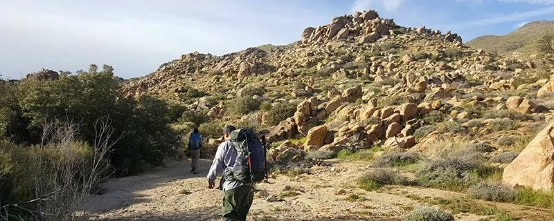 We will be hiking at lower elevations (2,800-5,500 ft) and the daily mileage and elevation change is moderate on this trip. We will carry 6-8 liters of water at times, resulting in fluctuating pack weights that are heavier after filling up (45+ pounds) and gradually decrease as we use/drink the water, then filling up again. There are also a few challenging sections that involve scrambling over small boulders and rocky terrain.