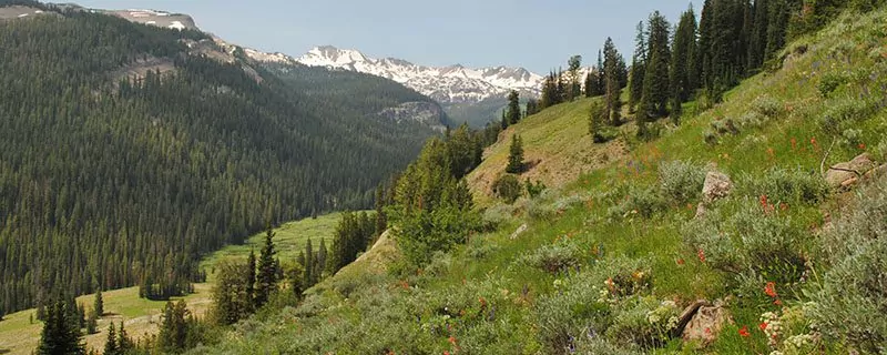 If you’re looking to pack a lot of fun into a short backpacking trip outside Jackson Hole, this one is a great choice! This 3-day trek features an amazing amount of hiking, scenery, and diversity. It is a fantastic early summer trip (July) and a fantastic one for wildflowers and wildlife. There is an abundance of deer, elk, moose, bighorn sheep, fox, wolves, bears, birds of prey and other wildlife in these mountains!