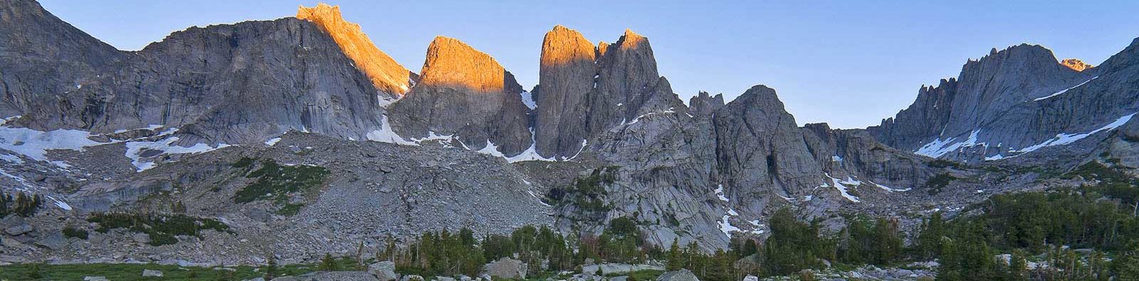 The Wind River Range lies south of Yellowstone and Jackson Hole, and is home to some of America’s best hiking and backpacking. These mountains are intensely scenic, characterized by waterfalls, alpine lakes, massive granite spires, high mountain cirques, glaciers, and vast meadow systems. Split by the Continental Divide, the Wind River Range literally forms part of the spine of North America!