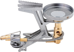 CLOSER LOOK: For a less expensive cousin of the burly SOTO Fusion Trek, we have the Windmaster here. The recessed flame cup provides adequate wind protection in gusty conditions while the built-in ignitor is a handy and convenient addition. But the Windmaster is slightly heavier and more expensive than its competition – in part due to the stable 4-prong support and ignitor. Therefore, we consider the Windmaster a good investment for those who expect windy conditions but don’t want to invest in expensive integrated stoves and still want some flame control.