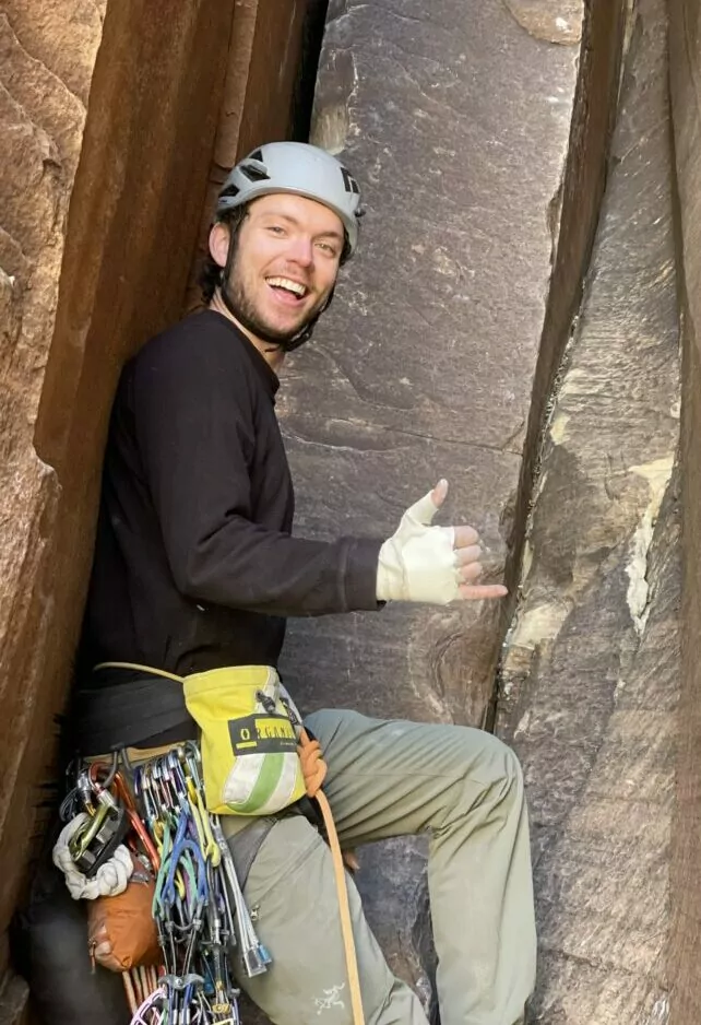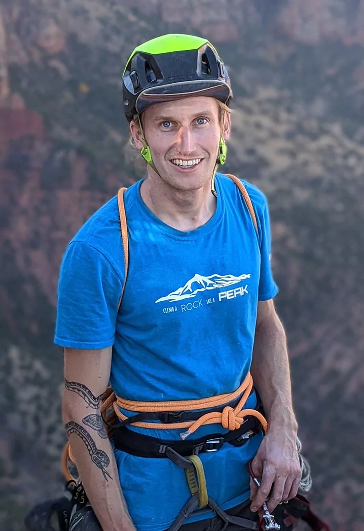 Sam grew up in Indianapolis, where most of his time outside was spent skateboarding! In high school, Sam fell in love with rock climbing which led him west and helped uncover his passion for teaching and sharing his love for the outdoors with everyone. Sam is still bopping around in his van spending most of his time climbing, snowboarding, and learning new things!