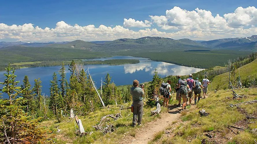 This Yellowstone backpacking trip features an amazing array of classic Yellowstone highlights in a remote, backcountry setting. Highlights include possible wildlife sightings (never guaranteed), spectacular views, deep wilderness, a peak ascent, lakeside camping, wonderful hiking, thermal features and more! This trip is also a point-to-point thru-hike, so we see all new scenery every day.