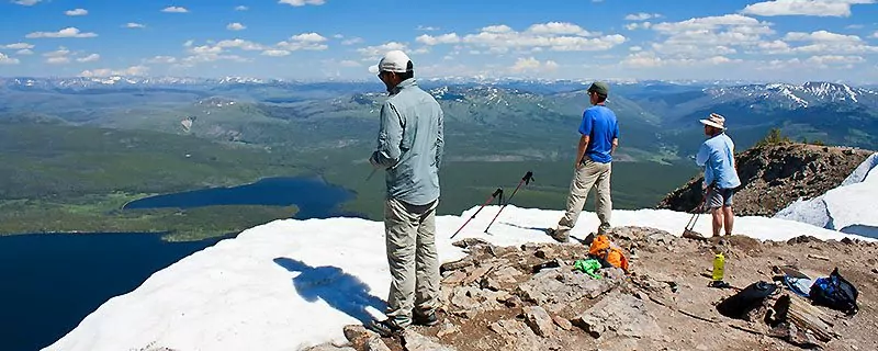 The 4-day version of this trip is Level 4 difficulty, the 5-day version is Level 3 difficulty. This trip is on mostly well-traveled trails, with two crossings of the Snake River. The first is fairly easy, the second is wide and on a cobble surface, but shallow. The final approach to the summit of Mt. Sheridan is along a ridge with very steep hillsides and drop-offs along the trail that are unavoidable, but this section is only about a quarter mile long.