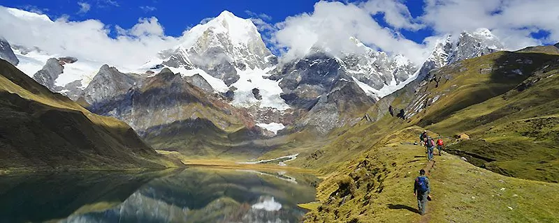 After a nutritious breakfast, we’ll breakdown camp and pack our gear onto the mules. From here, we lace up our boots and begin hiking. We’ll be accompanied on our walk today with breathtaking mountain views of Siula Grande, Yerupaja and Ninashanca. We walk 4-5 hours until we arrive at the Carhuacocha Lake camp (13,615 ft.), where we’ll have a relaxed lunch and camp for the next 2 nights. With our extra time here, you can relax at the lake and take in the amazing scenery. For anyone wanting an extra challenge and to explore a bit more, we can hike up to a viewpoint high above the lake before our much-deserved dinner prepared by our chef and served by our camp staff.