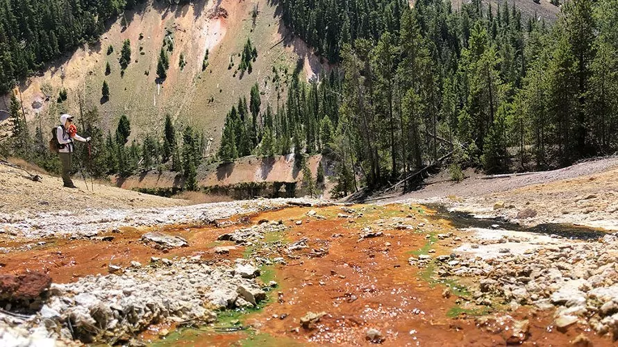 Looking for a more adventurous day hike? Let us lead you to the bottom of the Grand Canyon of the Yellowstone on this dynamic full-day hike. Seven Mile Hole is the only established trail that takes you below the rim of this colorful canyon. In the first few miles, we’ll enjoy classic Lodgepole pine forests, a splash of meadows, and a view of Silver Cord Cascade. Eventually, we’ll leave the wide flat trail behind us and begin an intensely steep down climb. The forest will open up to an other-worldly geyser basin before we drop even further to reach the river’s edge. Down here, the canyon walls are painted an array of vibrant colors that rival those seen at Artist Point. Unlike visiting those walk-up canyon viewpoints, you’ll have few to zero other hikers around while you relish this magical place.