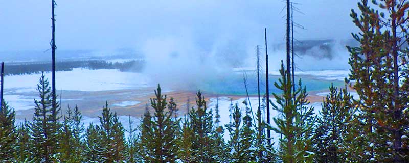 The difficulties of this trip come from the typically harsh winter conditions of the area. The majority of the hikes are on packed trails and boardwalks (when in thermal areas), but the route to Lone Star Geyser can involve some difficult trail breaking depending on recent snowfall.