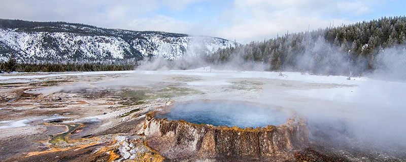 Our Yellowstone Snowshoe Traverse is an opportunity to explore and enjoy the truly majestic winter beauty of Yellowstone National Park on foot. We’ll embark on five days of snowshoeing through vast, snow-covered meadows to geysers, frozen waterfalls, and wildlife areas. Each evening we’ll return to cozy national park lodges for showers, relaxation and hearty meals!