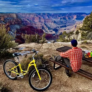 Bright Angel Bikes offers bicycle tours on the South Rim of the Grand Canyon. These are a fun, exciting way to experience the Canyon. Like hiking tours, the guides will share their knowledge, stories and passion to enrich your experience and help the Canyon come to life in a way that’s difficult to do on your own. Most of these tours go out the Hermit Road, which is closed to all traffic except shuttle buses, park staff, backpackers, and the bicycle tours.