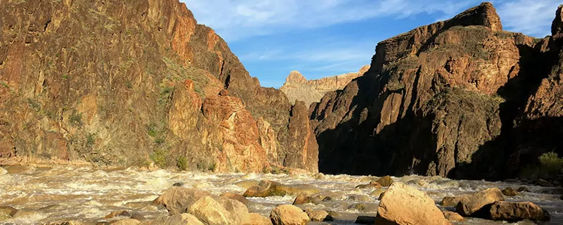 Day 2: Get an early start and hike east along the trail toward the Colorado River. Make camp on the shores of the Colorado River and mouth of Red Canyon, which forms a dramatic section of rapids, called Hance Rapids. 6.5 miles, 1100 feet elevation loss.