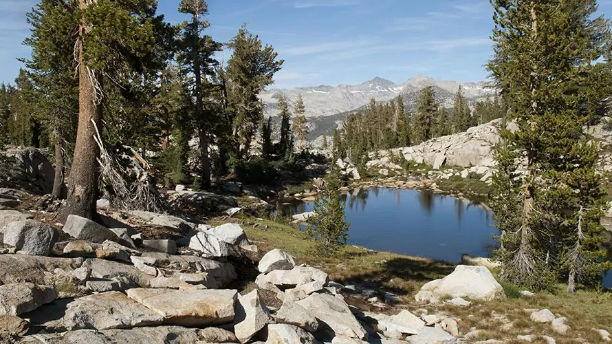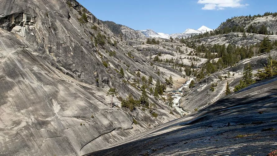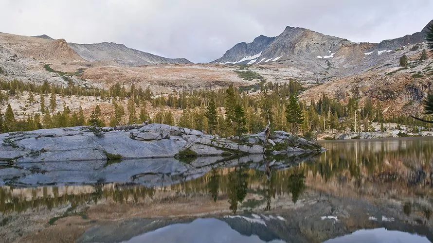 We have a mellower hike today with a moderately easy route to tonight’s camp, so we can linger a little longer and savor a relaxing breakfast and hot drinks around the morning campfire. Once on the trail we amble along the west bank of the Merced River enjoying the relatively level trail through the glacially smoothed landscape. After a scenic riverside lunch, the trail steepens a bit as we continue our descent toward a large backcountry lake surrounded by granite slabs and conifer forests, which we soon reach. After setting up camp among the granite boulders, we will have time to enjoy the area and the lake, perhaps take a swim or just lie back and watch the clouds float by.