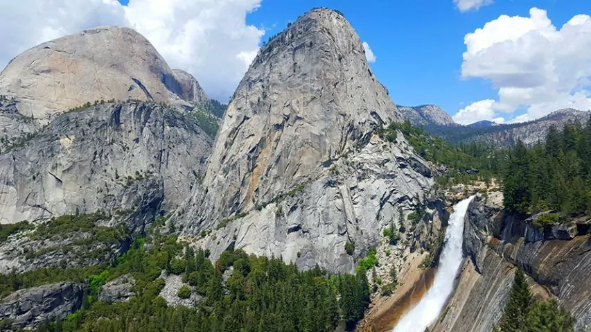 Yosemite Falls is a perfect point of interest for any one-day tour of Yosemite National Park. A quick one-mile loop trail will lead you to the base of Lower Yosemite Fall. This trail is also wheelchair-accessible, making it a fast and easy journey for families. If you want an up-close-and-personal view of the falls, hike the seven miles of trail that provide amazing outlooks of the Yosemite Valley. You can experience these gorgeous views during a customized Yosemite day hike with Wildland Trekking.