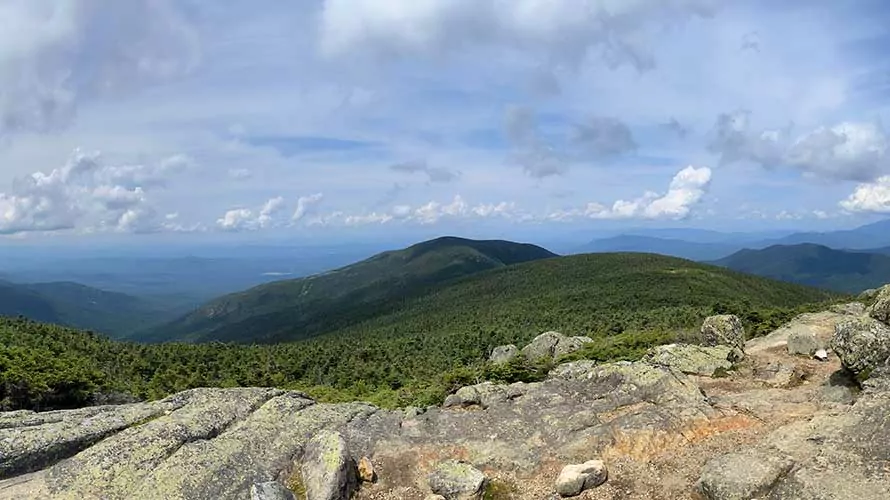 This trail features typical New England hiking with steep ascents over short distances with no switchbacks. The second day of this trip starts with a 1200′ ascent in only about 0.7 miles, and this second day has taken our groups 11+ hours on trail. Expect technical, broken terrain that will sometimes require you to use both hands going both up or down. While we are ‘on trail’ all day, the trail is more akin to a continous rock field than a dirt trail for about half of this hike. Thanks to the huts, our packs are on the lighter side and distances are generally short.