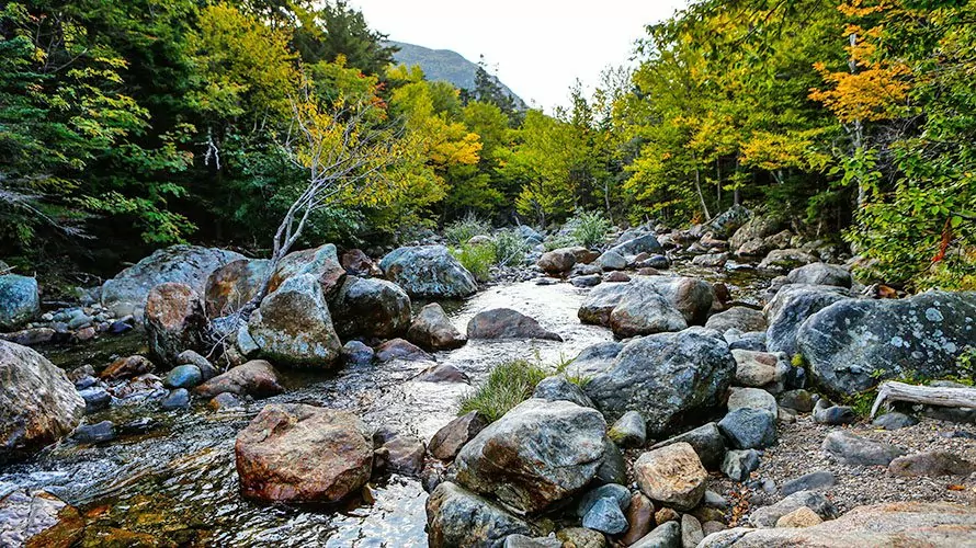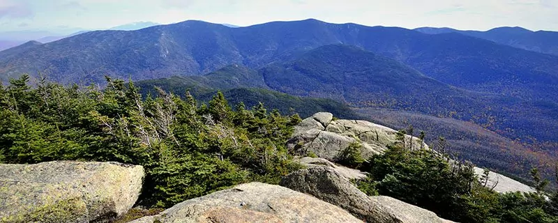 The White Mountains are home to the notorious weather station on the top of Mount Washington where in 1934 the fastest wind speed record on land that wasn’t associated with a tornado or hurricane – 231 mph – was recorded. The weather can be wildly erratic, which makes it important to follow the packing list and be prepared for a diversity of conditions including temperate and humid to below freezing to windy and rainy. Thunderstorms in the summer are common, but so are sunny, blue bird skies on long summer days.