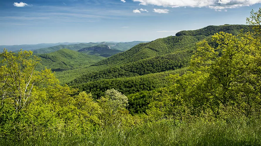 This is one of the classic hikes in the Pisgah National Forest and Blue Ridge Mountains. Looking Glass Rock is one of the most iconic mountains in the Asheville area and one that offers phenomenal hiking, spectacular views, and a summit you’ll never forget. Our half day hike to the summit of this monolith takes us along idyllic mountain streams; through classic Appalachian forests with hemlocks, rhododendron and mountain laurel bushes; and finally to the rock slabs that define the upper reaches of the mountain. We pass though diverse forests and ecosystems on our way to the top and will keep sharp eyes out for wildlife and unique birds. After reaching the summit our efforts will be rewarded with massive, sweeping views of the surrounding mountains and valleys, and a wonderful picnic lunch prepared by your guide. After lunch we will descend back down the slabs, forests, and creeks to our starting point.