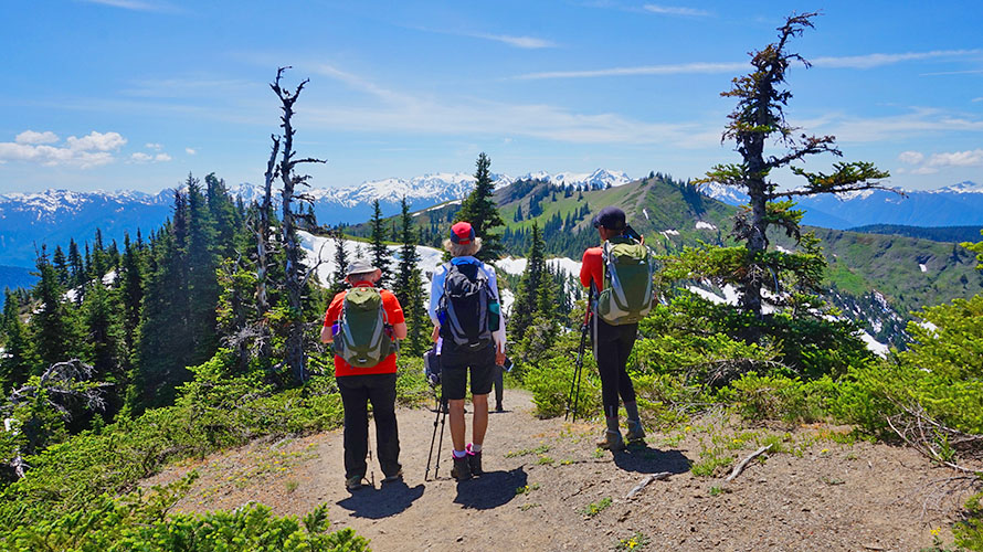 Day by day highlights include—a classic ridge traverse along the Olympic mountain range, over a mile above sea level; a stunning coastal hike to Shi Shi Beach, one of the world’s most beautiful beaches; a trek through the renowned Hoh Rainforest, home to some of Washington’s largest and oldest trees; an iconic hike on Mount Rainier past the famous Reflection Lakes, offering breathtaking views of the volcano and surrounding peaks; an alpine meadow hike through a wildflower wonderland with panoramic views of a majestic glacier; and a visit to an unforgettable waterfall.